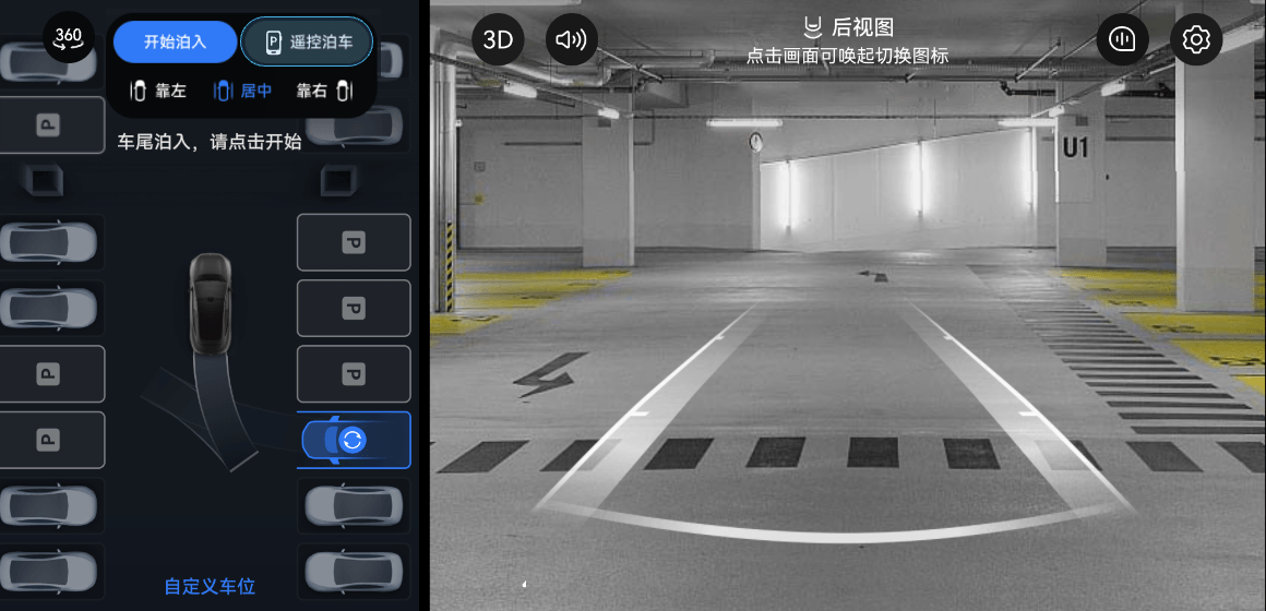 1.请参见APA 泊入车位,在中控屏选择需要泊入的目标停车位。