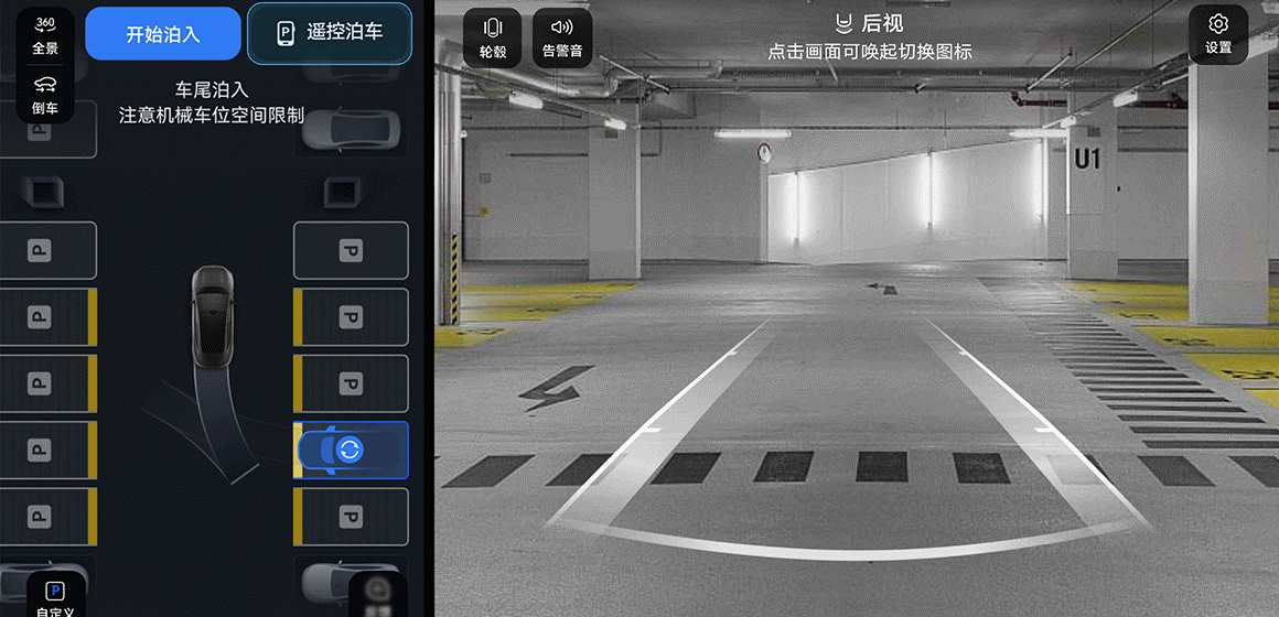 2.选定车位后,在中控屏泊车界面点触“遥控泊车”。