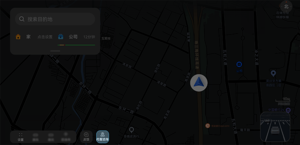 对于ADS超阶版用户,中控屏将弹出到达默认车位的导航推荐卡片,点触“开始导航”。如未收到导航推荐卡片,可点触 ,手动发起到目标车位的导航。