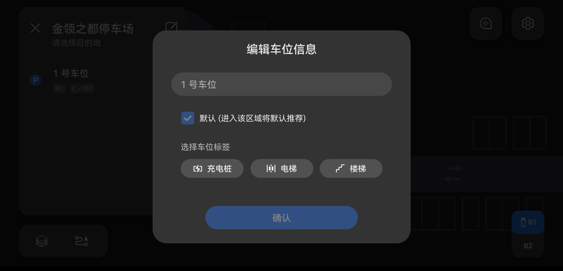 4.(可选)点触“知道了”后,可编辑车位标识信息(如有充电桩、在电梯旁等位置参考信息)。